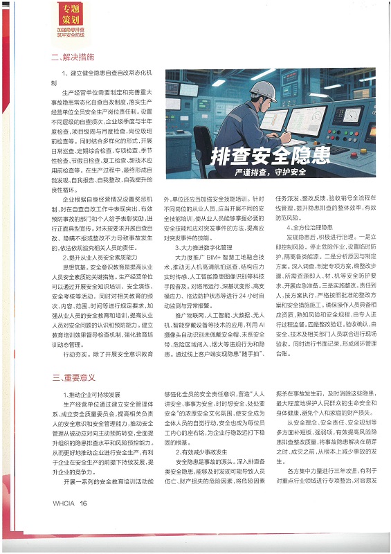 加強(qiáng)安全隱患排查是預(yù)防事故的第一道防線,直接關(guān)系人民群眾最根本的利益,也是企業(yè)生存發(fā)展和履行社會責(zé)任的必然要求,對保障經(jīng)濟(jì)平穩(wěn)運行和社會和諧穩(wěn)定至關(guān)重要。必須深刻認(rèn)識其重要性,將其作為一項基礎(chǔ)性、長期性、根本性的工作抓緊抓實抓細(xì),堅持關(guān)口前移、源頭治理,真正做到防患于未然。